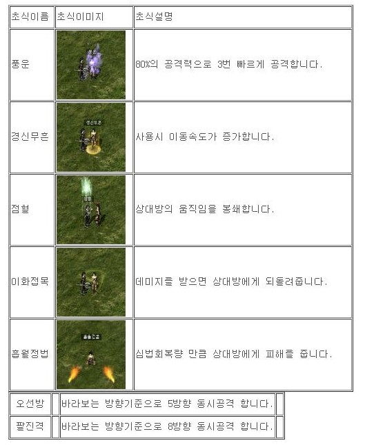천년프리서버 천년온라인 상승무공 일반무공 전체 종류표